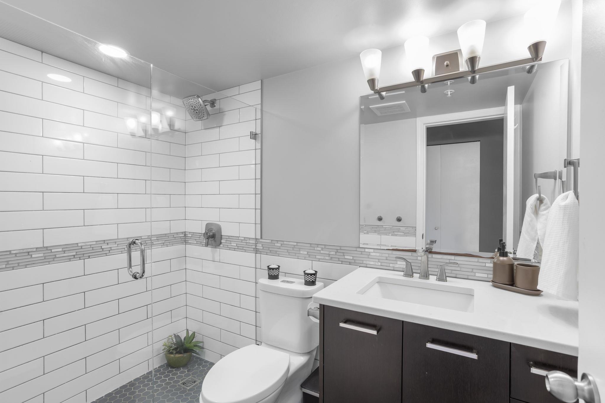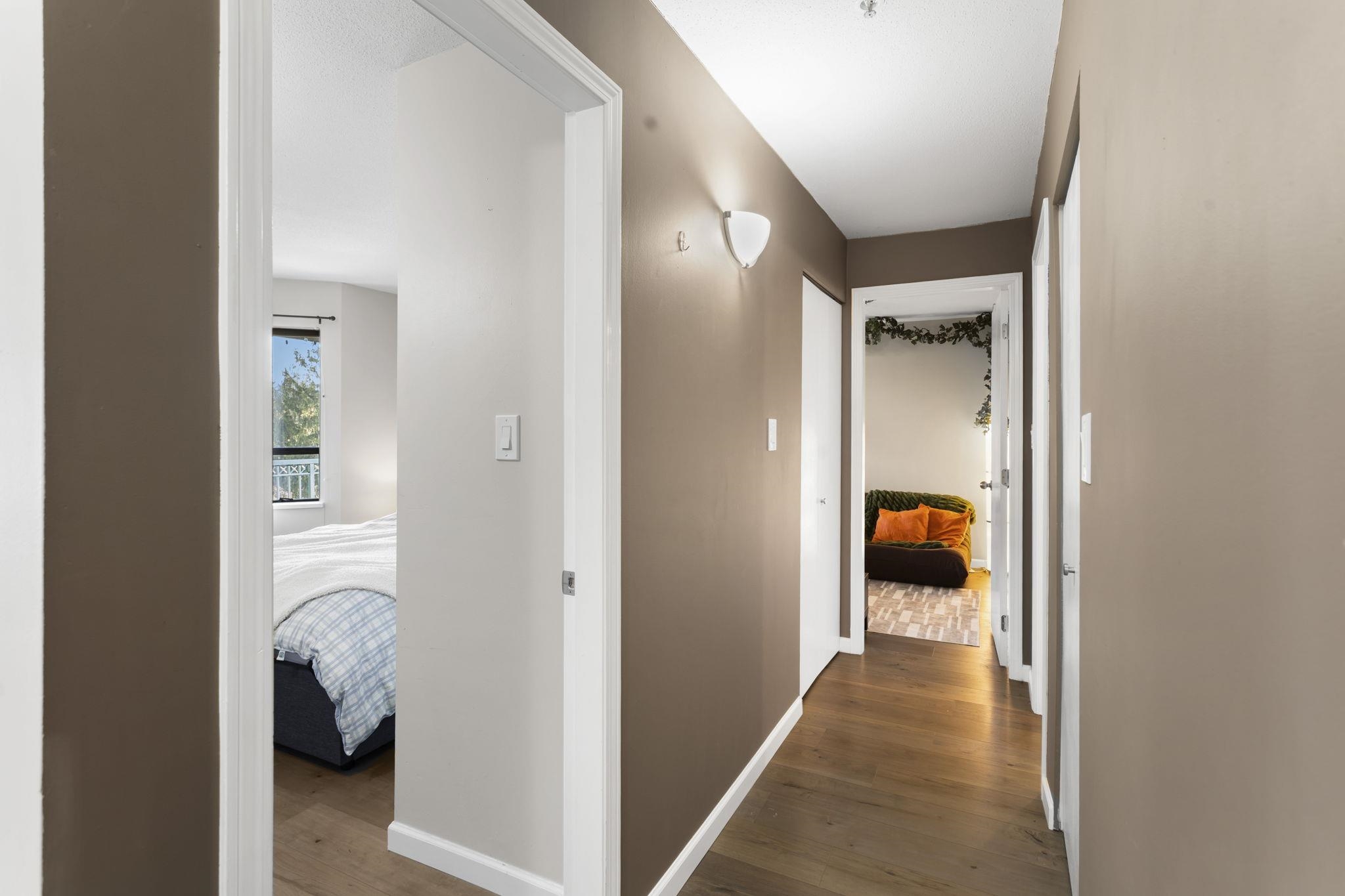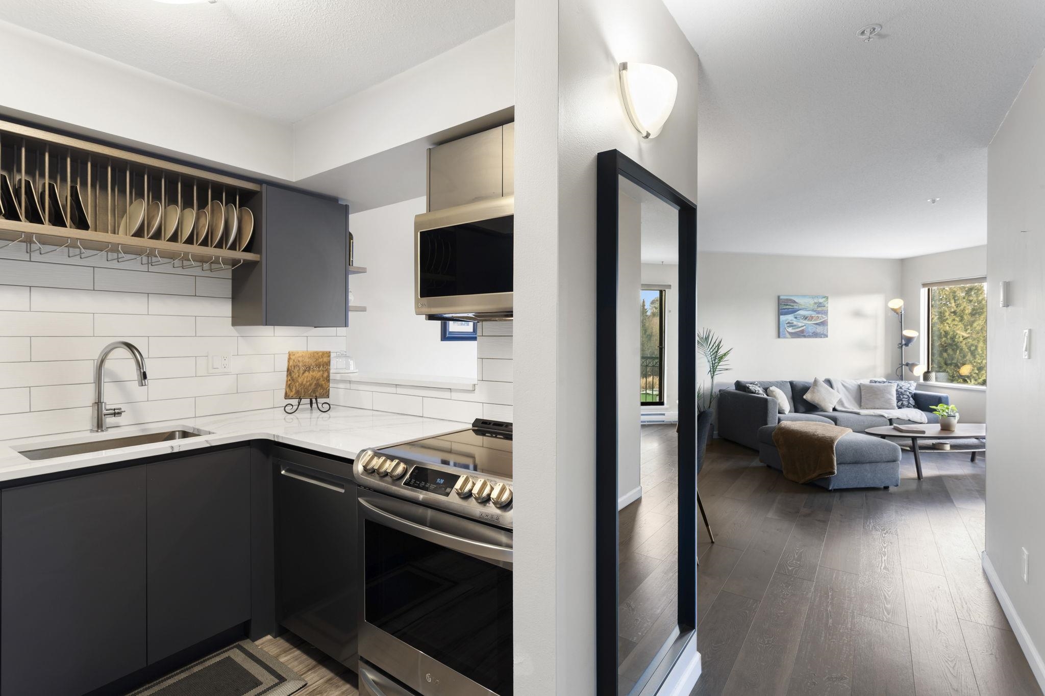 Overlooking a quiet green space, this exceptional 2 bed + den, 1 bath condo feels as though it was renovated yesterday! Completely updated in 2020 w/ over $65,000 spent in quality upgrades like custom bath w/ walk in shower, custom kitchen, appliances & more! Impeccably maintained & showcasing a large & private balcony w/ green belt view, modern finishes, a smart functional layout & spacious primary bedroom w/ walk in closet. The versatile den area offers added flexibility for home office or organized storage. Complete w/ 2 parking stalls & ideally located near Downtown Langley w/ shops, restaurants, cafes, transit, parks & casino all at your doorstep! The perfect balance of privacy, comfort & convenience – welcome home. *BONUS - The Seller is paying your strata fees for 6 months!*