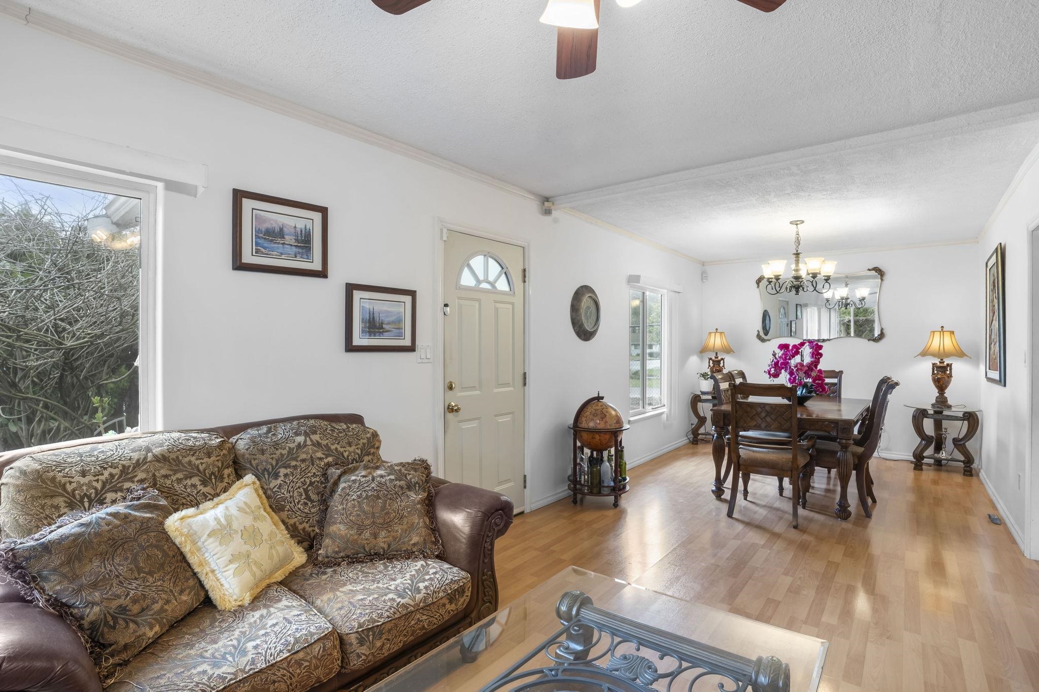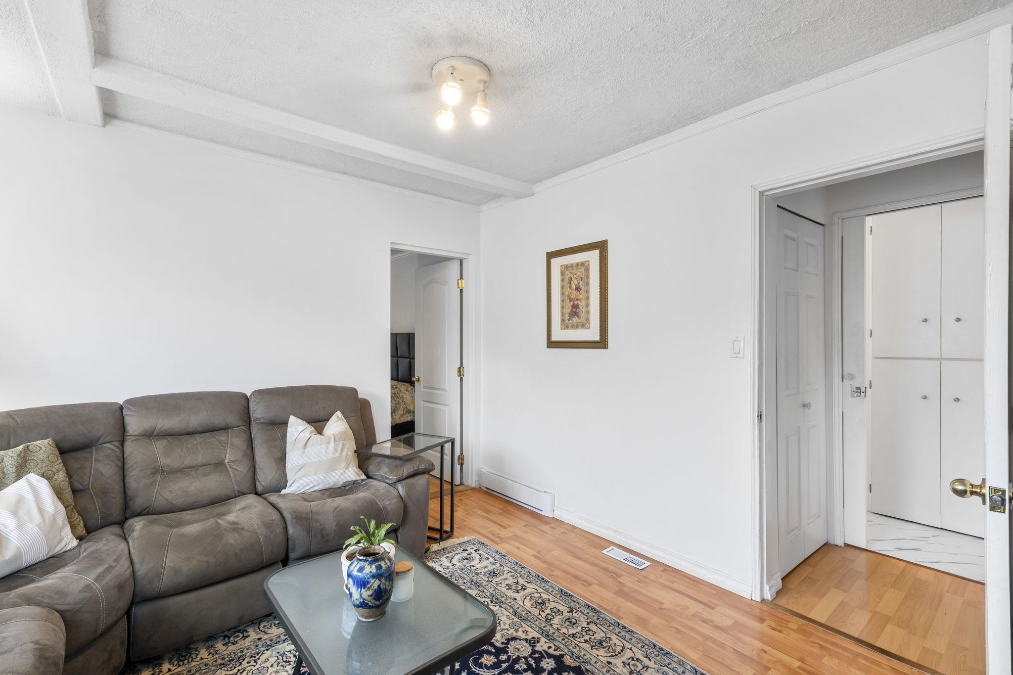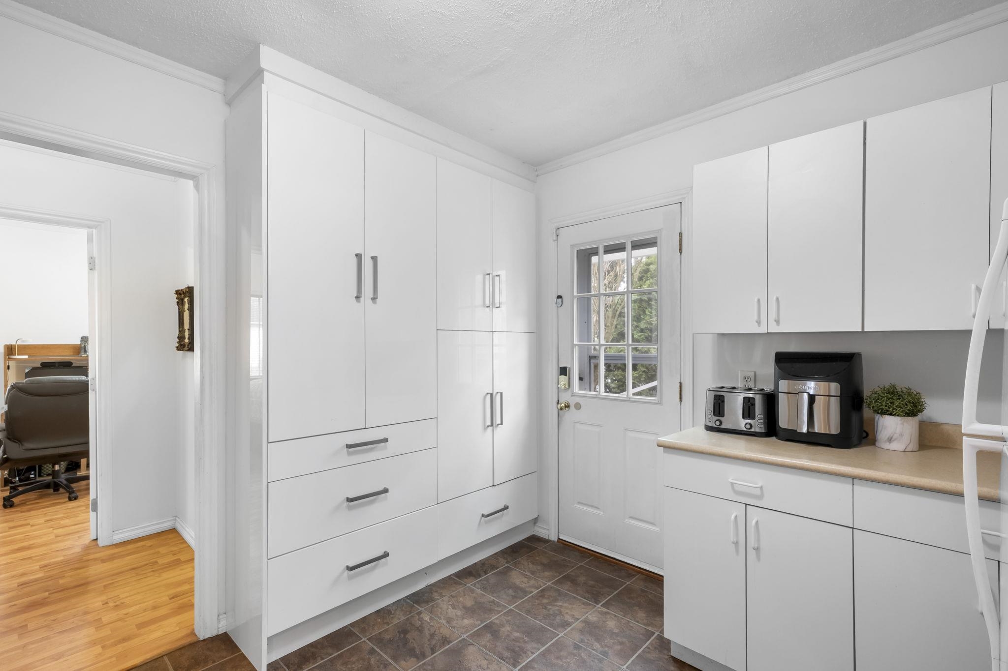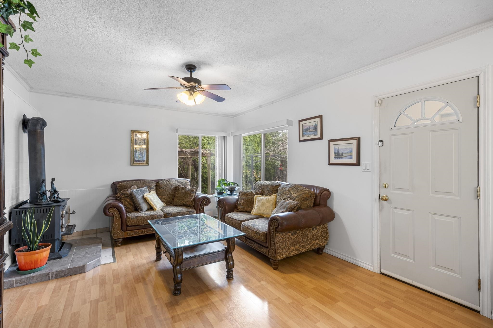 Bright, cozy & quiet 3-bedroom, 1-bath home set on a flat & private lot. The 3rd bedroom or flex/family room offers versatility to match your needs. This well-kept home features an inviting cast iron wood fireplace, 3 separate entrances, a solarium & plenty of storage throughout. Enjoy the large private yard which includes an XL storage shed/workshop, different varieties of fruit trees & space to entertain, relax or garden. Updates include a newer roof & windows. New furnace & central air conditioning (2017). Renovations in 2023 include custom kitchen shelves, appliances, deck canopies, bathroom renovation & freshly painted inside & out. Ideally located close to schools, parks & all amenities with quick highway access for an easy commute-combining comfort, convenience and outdoor enjoyment
